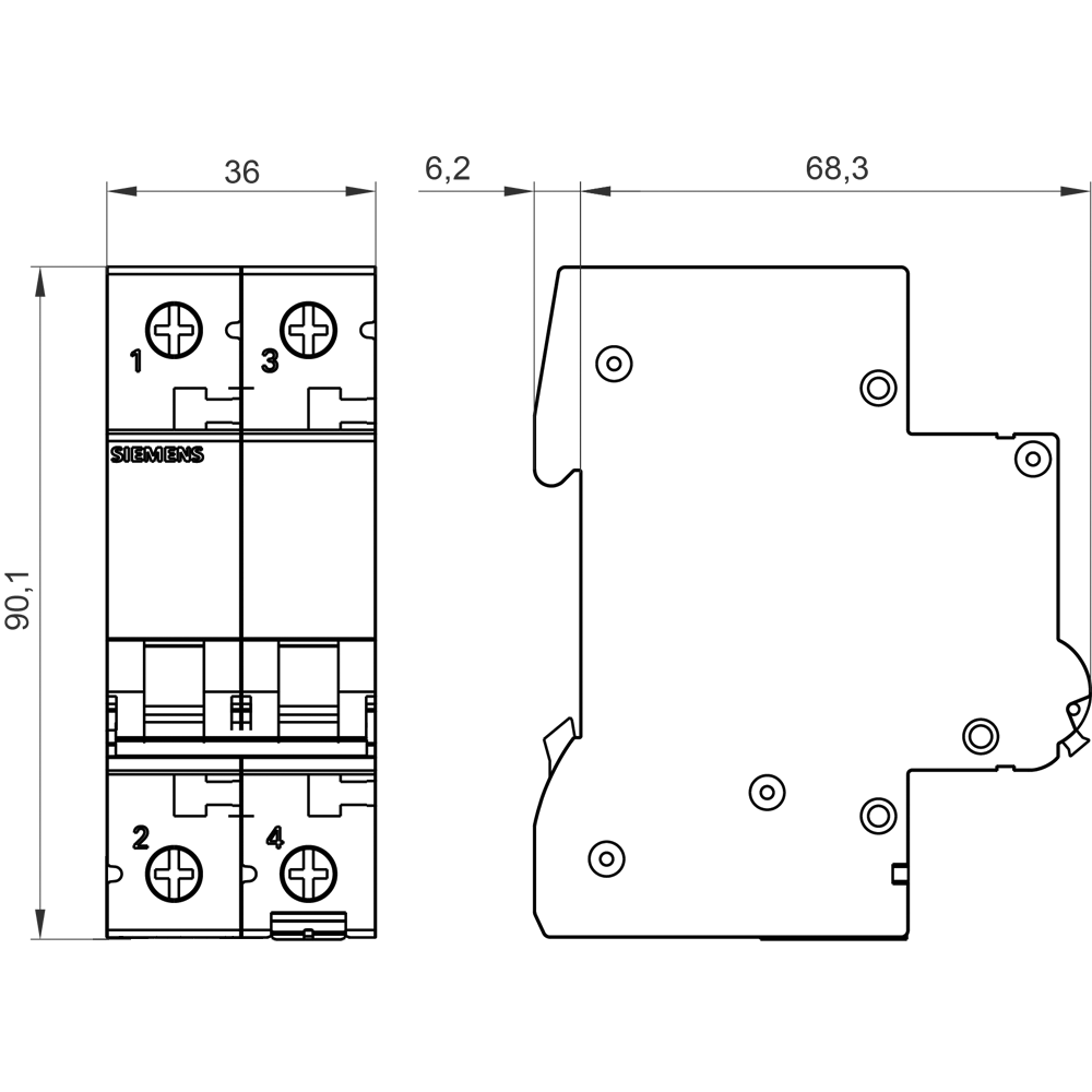 Znamionowa zwarciowa zdolność łączeniowa Icn zgodnie z EN 60898 przy 400 V 6 kA